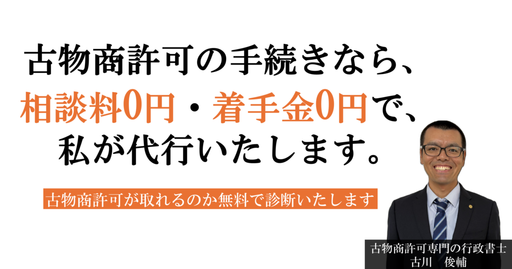 古物商許可の申請を検討する際、多くの方が気になるのが「費用」です。古物商許可の申請にかかる費用は、「法定手数料… 続きを読む: 申請手数料はいくら?手数料19,000円以外にかかる実費まとめ - 「誓約書」の内容とは?管理者用と申請者用の違い